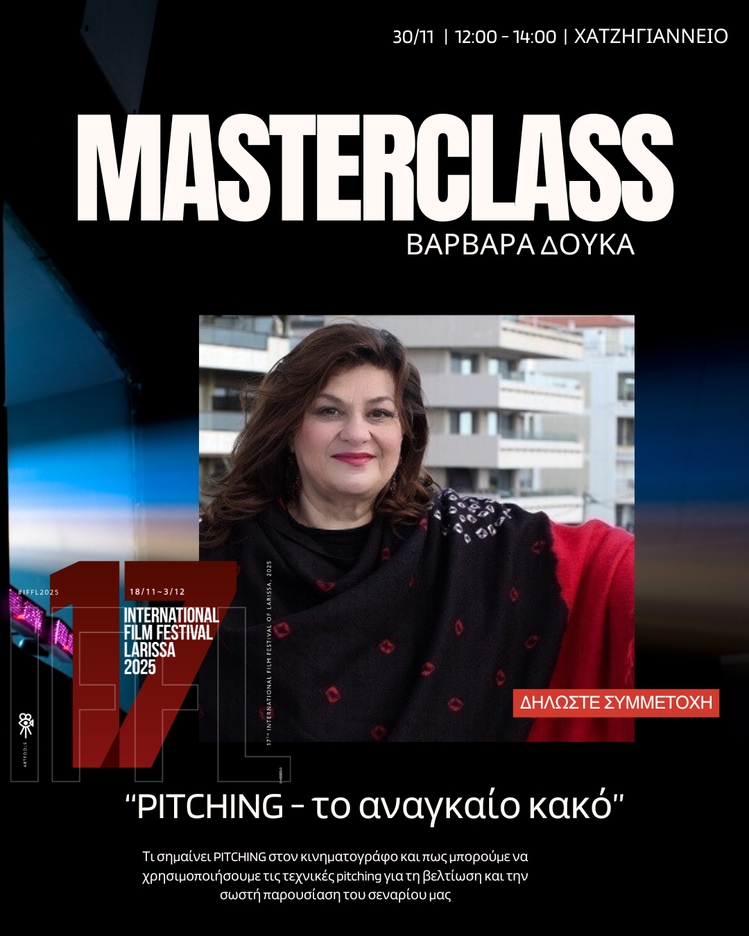 • 30/11 Εργαστήριο : Pitching Lab με την Βαρβάρα Δουκα. ΧΑΤΖΗΓΙΑΝΝΕΙΟ. 12:00-14:00
